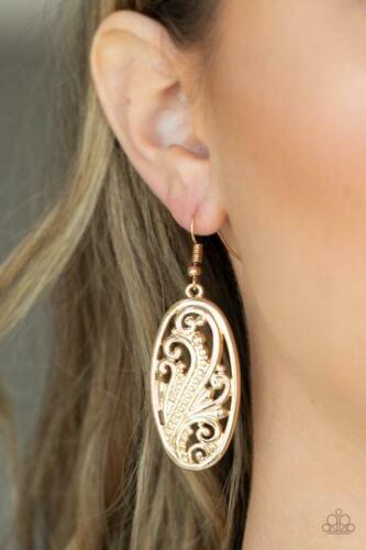 Featuring a high sheen gold finish, elegant frills and dotted designs blossom inside an oval frame create a swirling botanical allure. Earring attaches to a standard fishhook fitting.